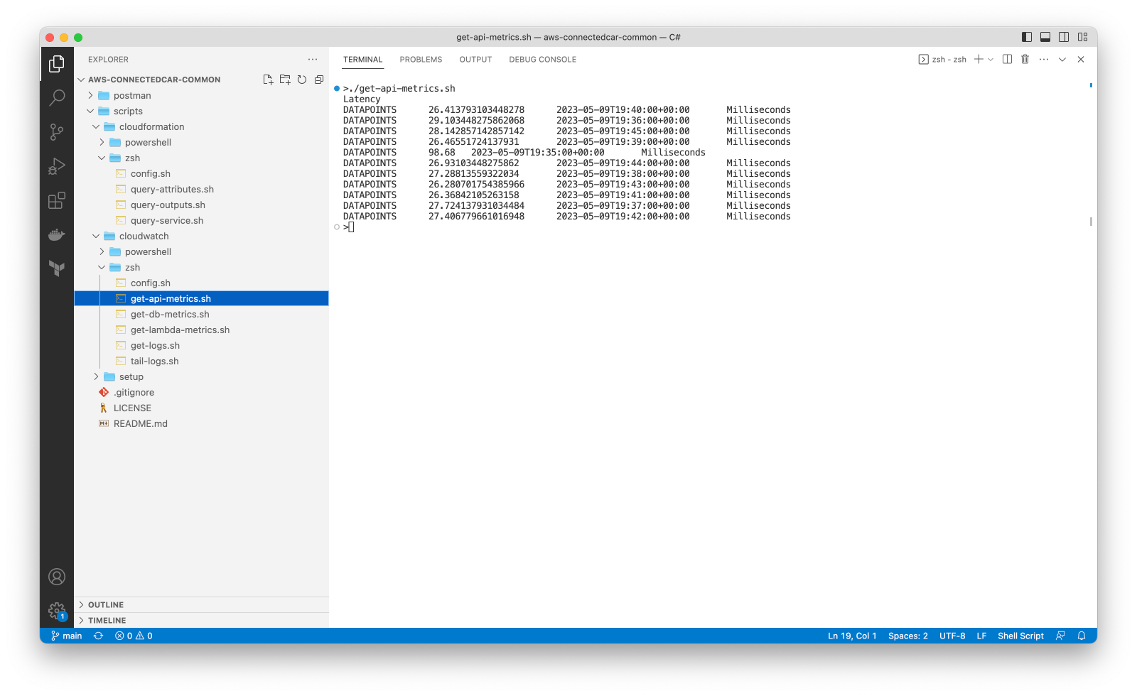 Step 5: Run the get-api-metrics.zsh script in the terminal