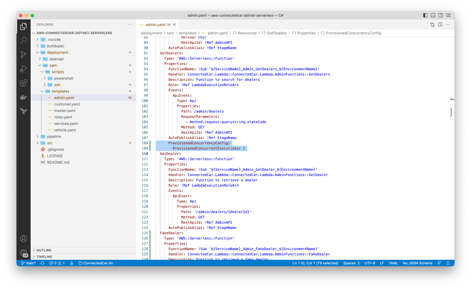 Step 1: Add the ProvisionedConcurrencyConfig property to the GetDealers resource