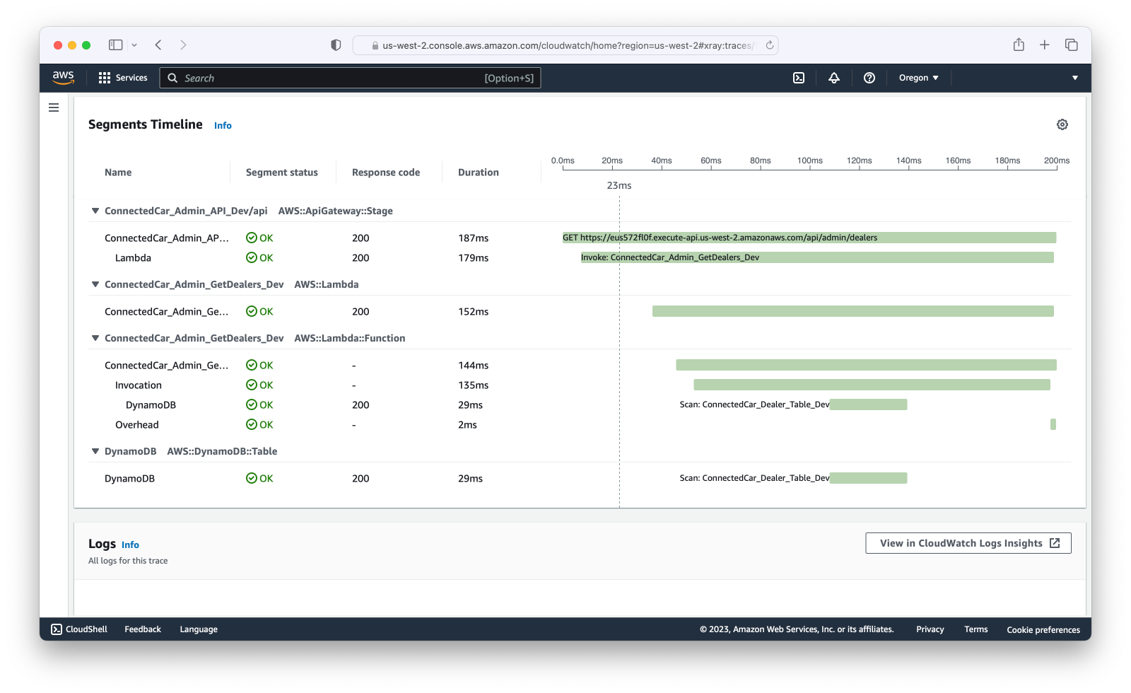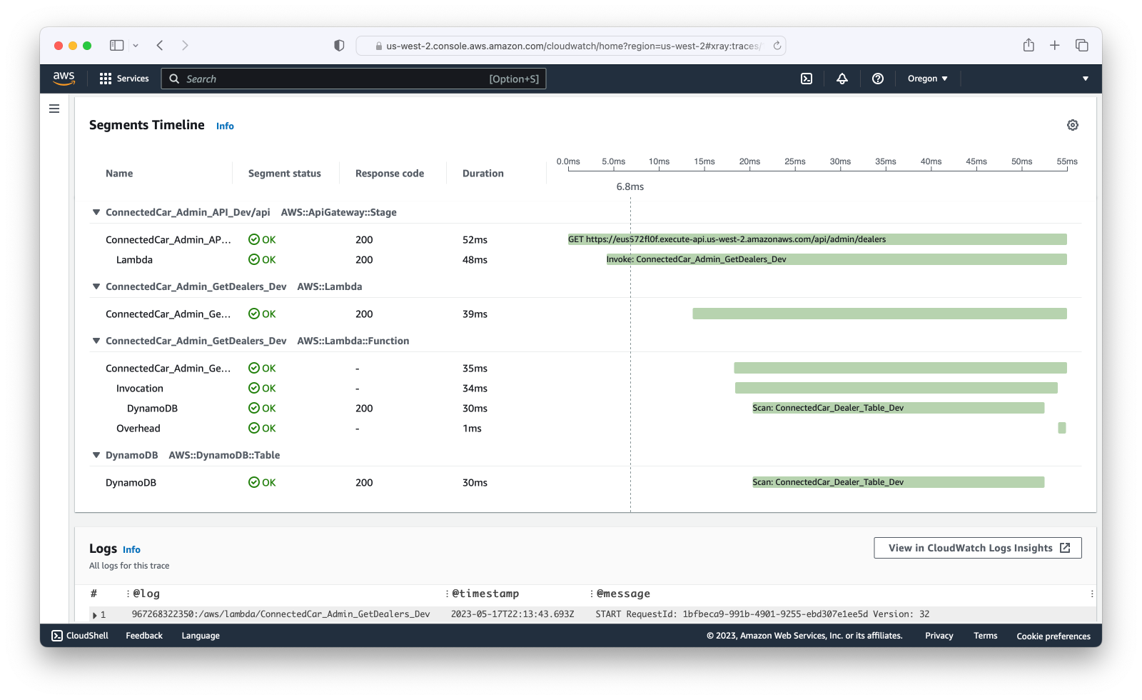 Step 5: Review the X-Ray traces for the two Get Dealers requests