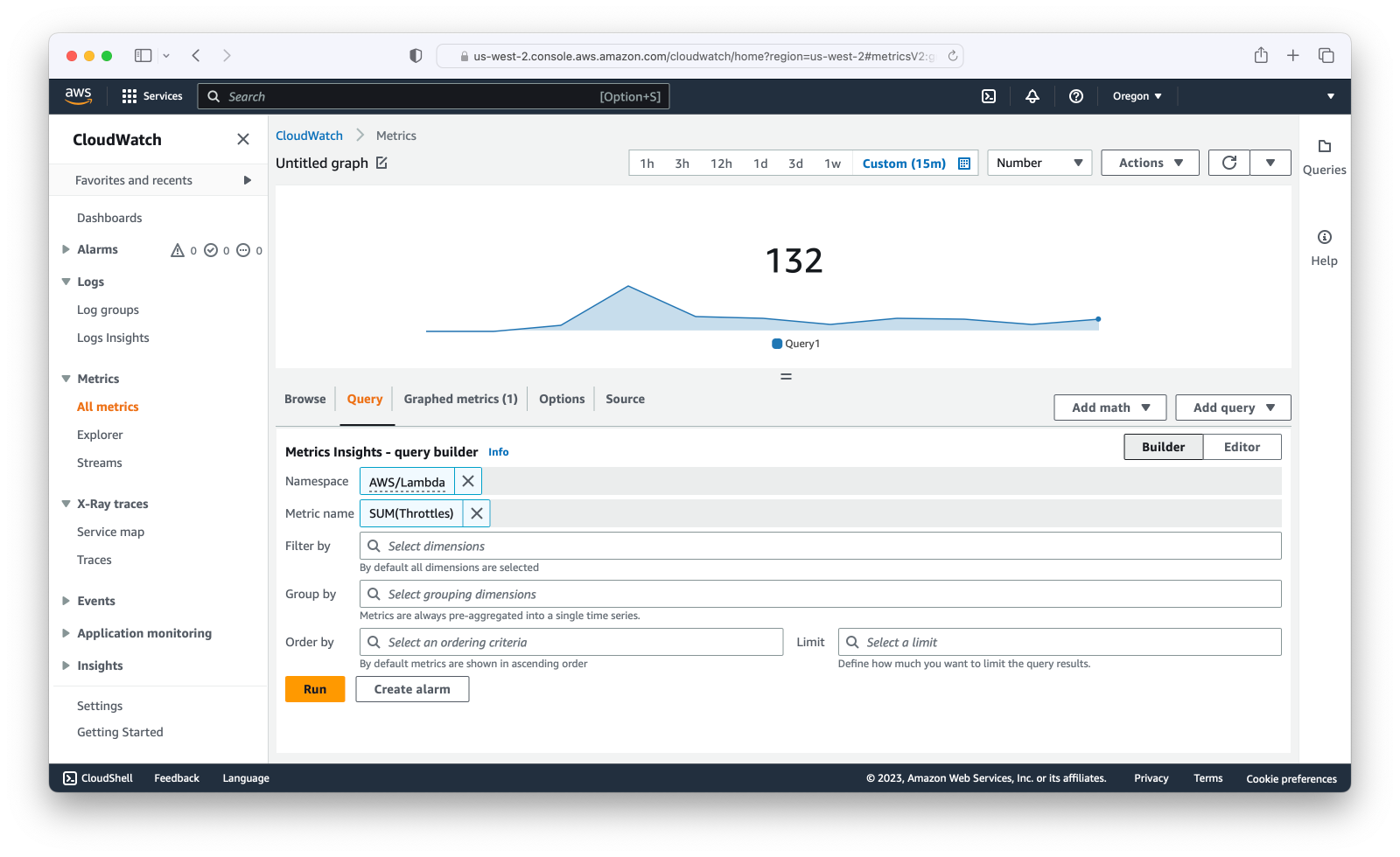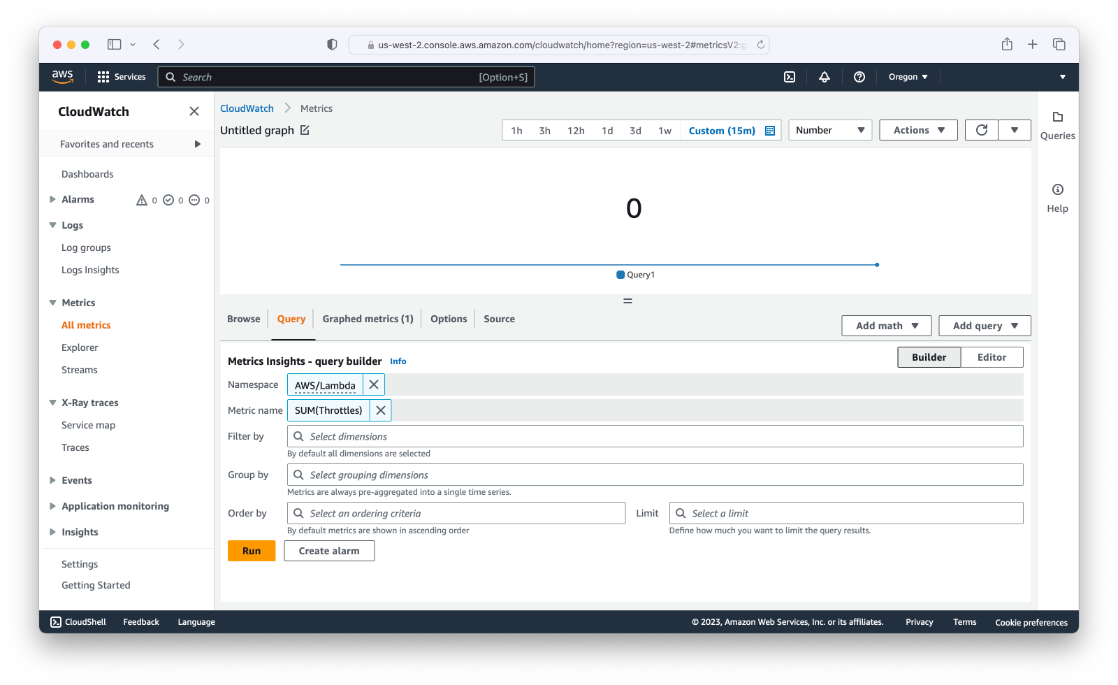 And lastly, the AWS/Lambda SUM(Throttles) should show a value that’s either low or zero, as shown below: