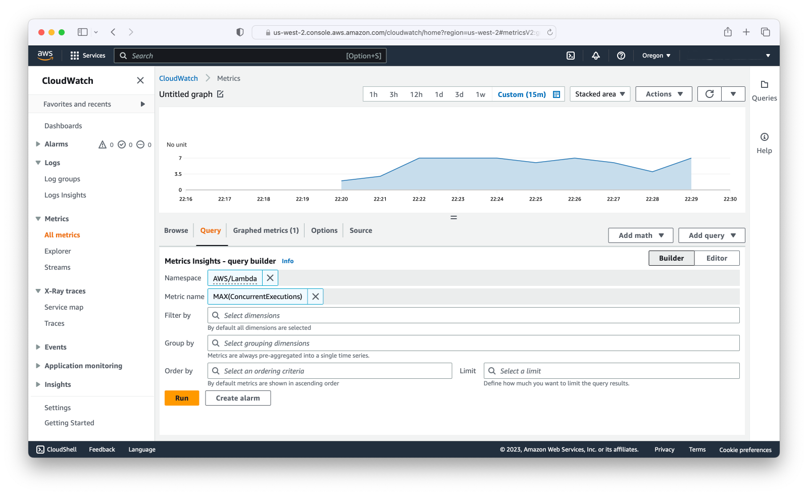 Step 3: Graph the concurrent execution and API error metrics in the console